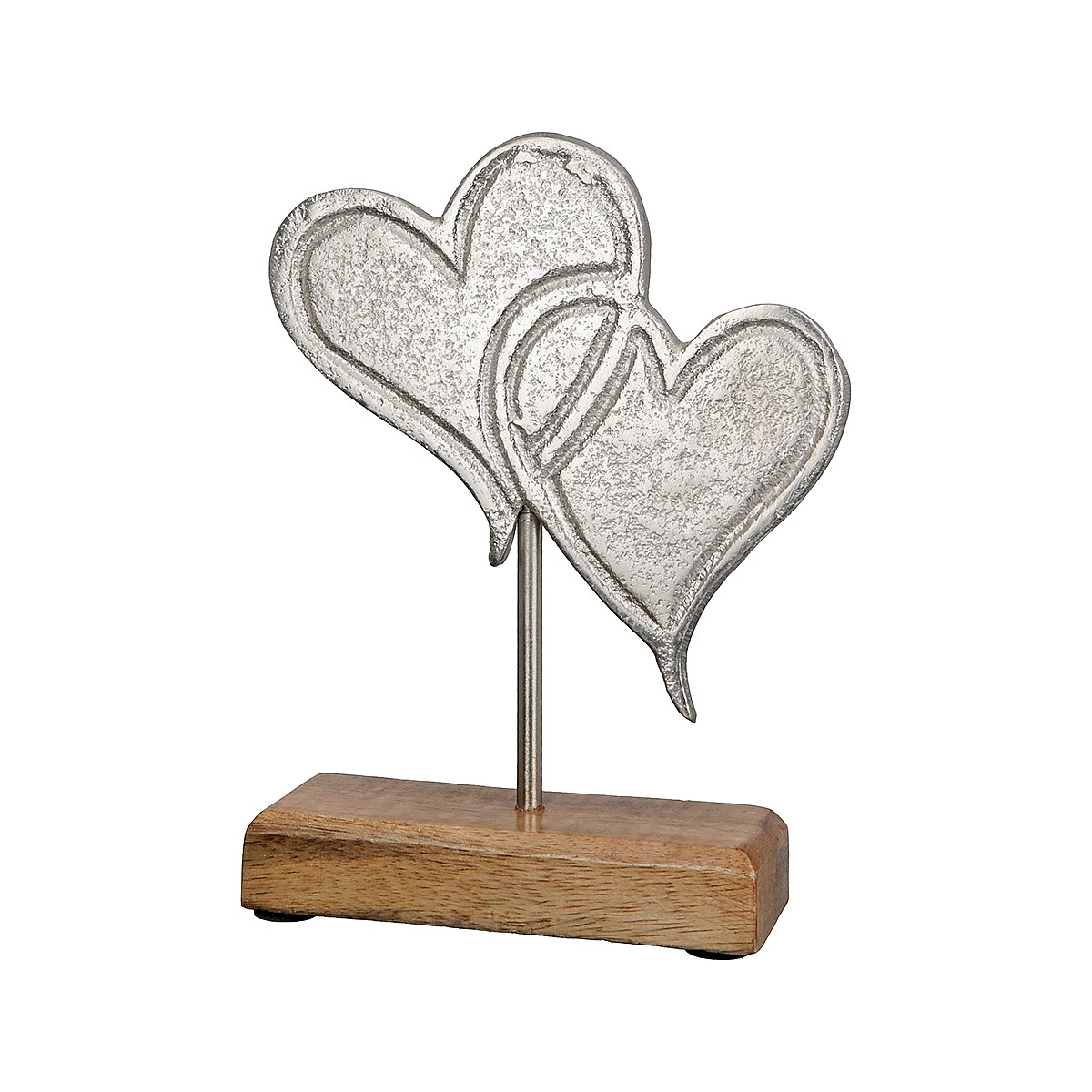Διακοσμητικό καρδιά 'Love' σε βάση ασημί/φυσικό αλουμίνιο/ξύλο 5x10x17cm.