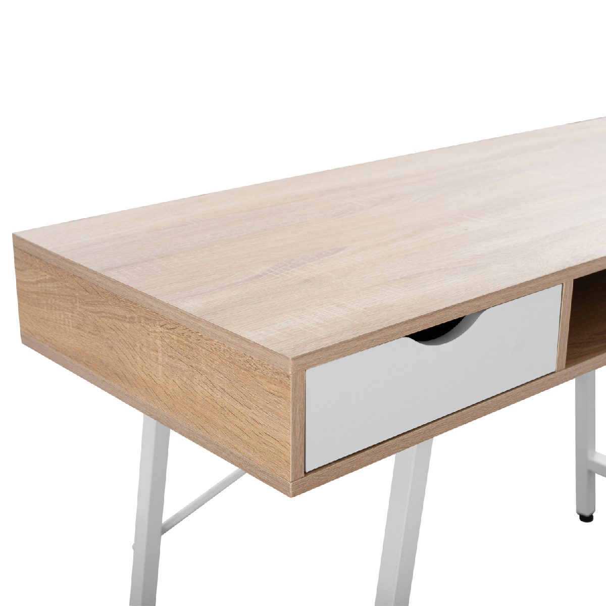 Το ΗΜ2128.01 είναι λιτό και διαθέτει δύο συρτάρια σε λευκό χρώμα (ένα δεξιά κι ένα αριστερά) και έναν ανοιχτό αποθηκευτικό χώρο ανάμεσα στα συρτάρια.