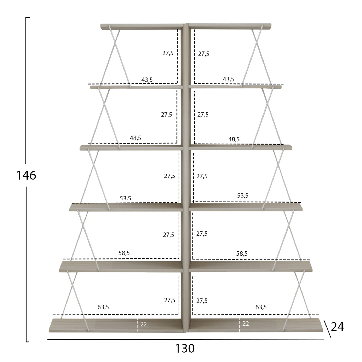 Διαστάσεις ραφιού Ε: 63,5x22x27,5Υ εκ.