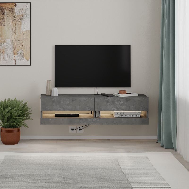 Έπιπλο τηλεόρασης επιτοίχιο Moon Megapap με LED χρώμα γκρι ρετρό 120x33,8x30εκ.