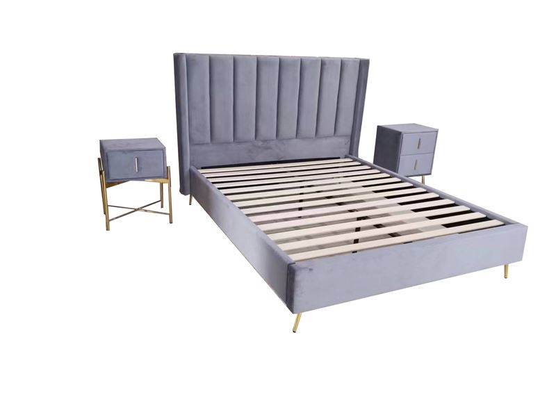 woo-43261 PASSION  ΚΡΕΒΑΤΙ ΔΙΠΛΟ ΓΙΑ ΣΤΡΩΜΑ 160X200CM, ΥΦΑΣΜΑ VELURE ΑΠΟΧΡΩΣΗ ΓΚΡΙ