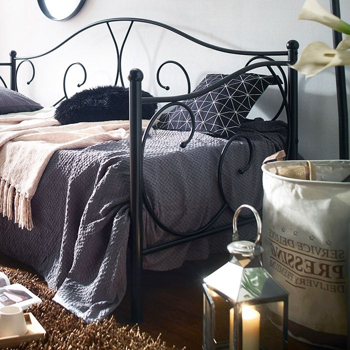 Μεταλλικό κρεβάτι κλασικού σχεδιασμού μαύρου χρώματος. Διαθέτει περιμετρικά μαύρα κάγκελα με 4 μεταλλικές κολώνες για μεγαλύτερη ασφάλεια, και ορθοπεδικές τάβλες για μεγαλύτερη άνεση. Μπορείτε να το χρησιμοποιήσετε και σαν καναπέ. Λειτουργικό σχέδιο που αποπνέει ρομαντισμό και κομψότητα.