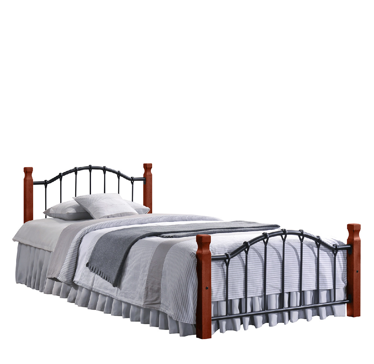 - Μεταλλικό κρεβάτι σε κλασικό σχέδιο με σταθερό και στιβαρό σκελετό ανθεκτικό στη φθορά του χρόνου και ξύλινα πόδια-κολώνες