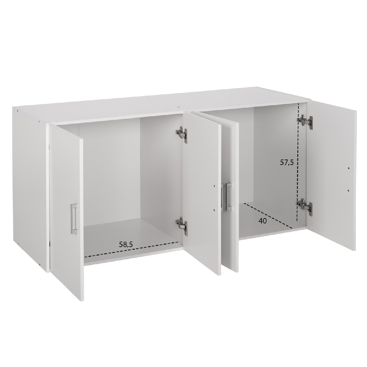 ΗΜ352.05----Το FERNANDA είναι ένα πατάρι για 4-φυλλη ντουλάπα. Πρόκειται για ένα πρακτικότατο συμπλήρωμα που έχει φτιαχτεί με γνώμονα την όσο το δυνατόν καλύτερη εκμετάλλευση του χώρου. Οι διαστάσεις είναι ικανοποιητικές και είναι χωρισμένο σε δύο διαμερίσματα. Και οι 4 πόρτες έχουν κάθετα μεταλλικά χερούλια, ενώ το εσωτερικό των διαμερισμάτων είναι κενό. Δεν διαθέτουν ράφια ή κάτι άλλο και ενδείκνυνται για αποθήκευση ογκωδών αντικειμένων. Το πατάρι είναι κατασκευασμένο από μελαμίνη σε ΛΕΥΚΟ χρώμα και εσείς πρέπει απλά να το ταιριάξετε με την υπάρχουσα ντουλάπα σας, τόσο χρωματικά, όσο και από πλευράς διαστάσεων.