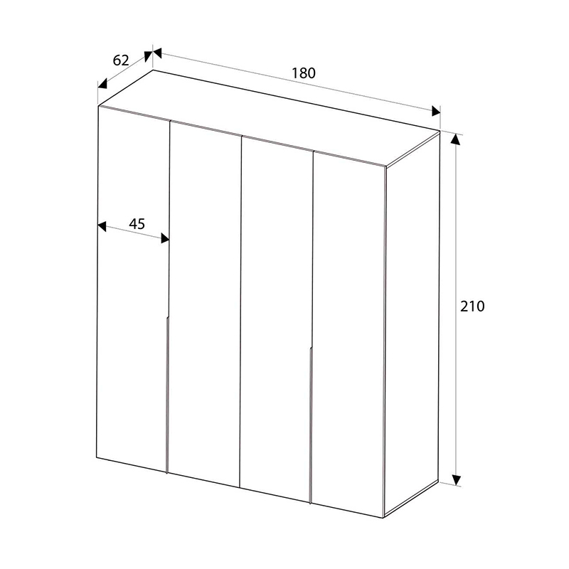 - Διαστάσεις ντουλάπας: Μήκος 180 x Βάθος 62 x Ύψος 210 εκ.