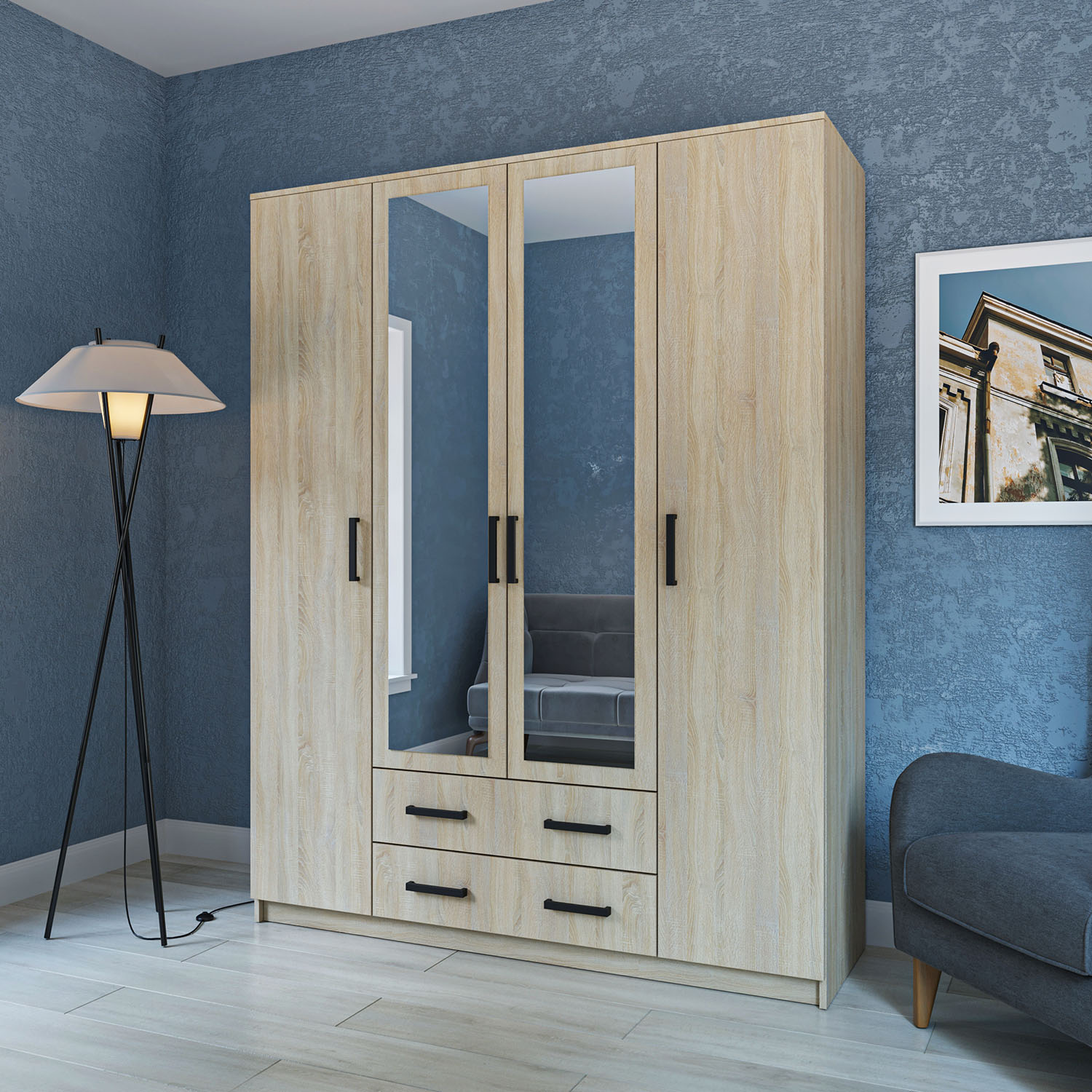 Τετράφυλλη Ντουλάπα Simple, Ευρωπαϊκής Κατασκευής, εξαιρετικής ποιότητας και υψηλής αντοχής, σε σονόμα απόχρωση.