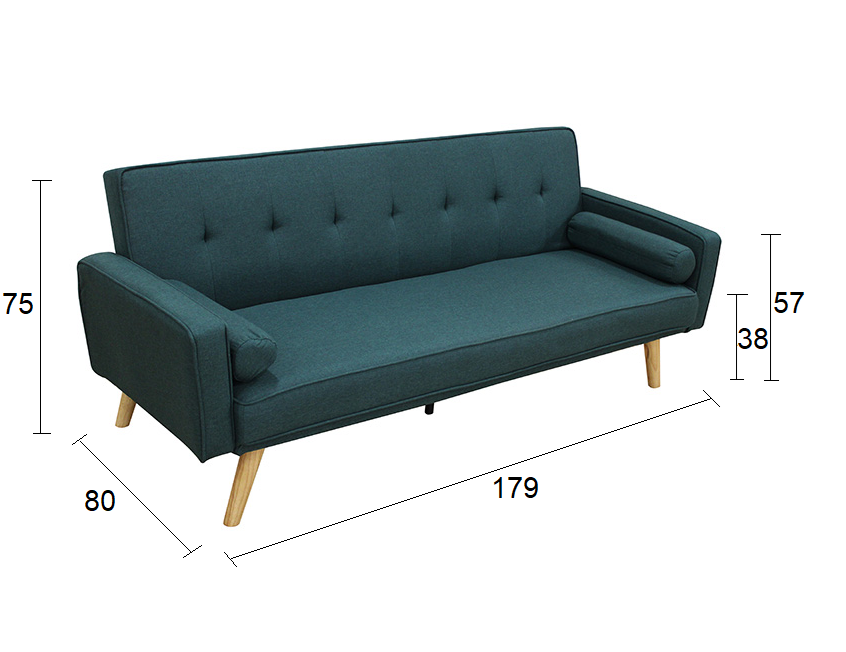 Rony τριθέσιος καναπές/κρεβάτι με ύφασμα σε green χρώμα και διακοσμητικά μαξιλάρια.Συνδυάζει κομψότητα, πρακτικότητα και άνεση, αποτελώντας την ιδανική επιλογή για κάθε σπίτι.Με μία κίνηση μετατρέπεται εύκολα σε άνετο κρεβάτι, εξασφαλίζοντας πρακτική λύση για φιλοξενία επισκεπτών.
