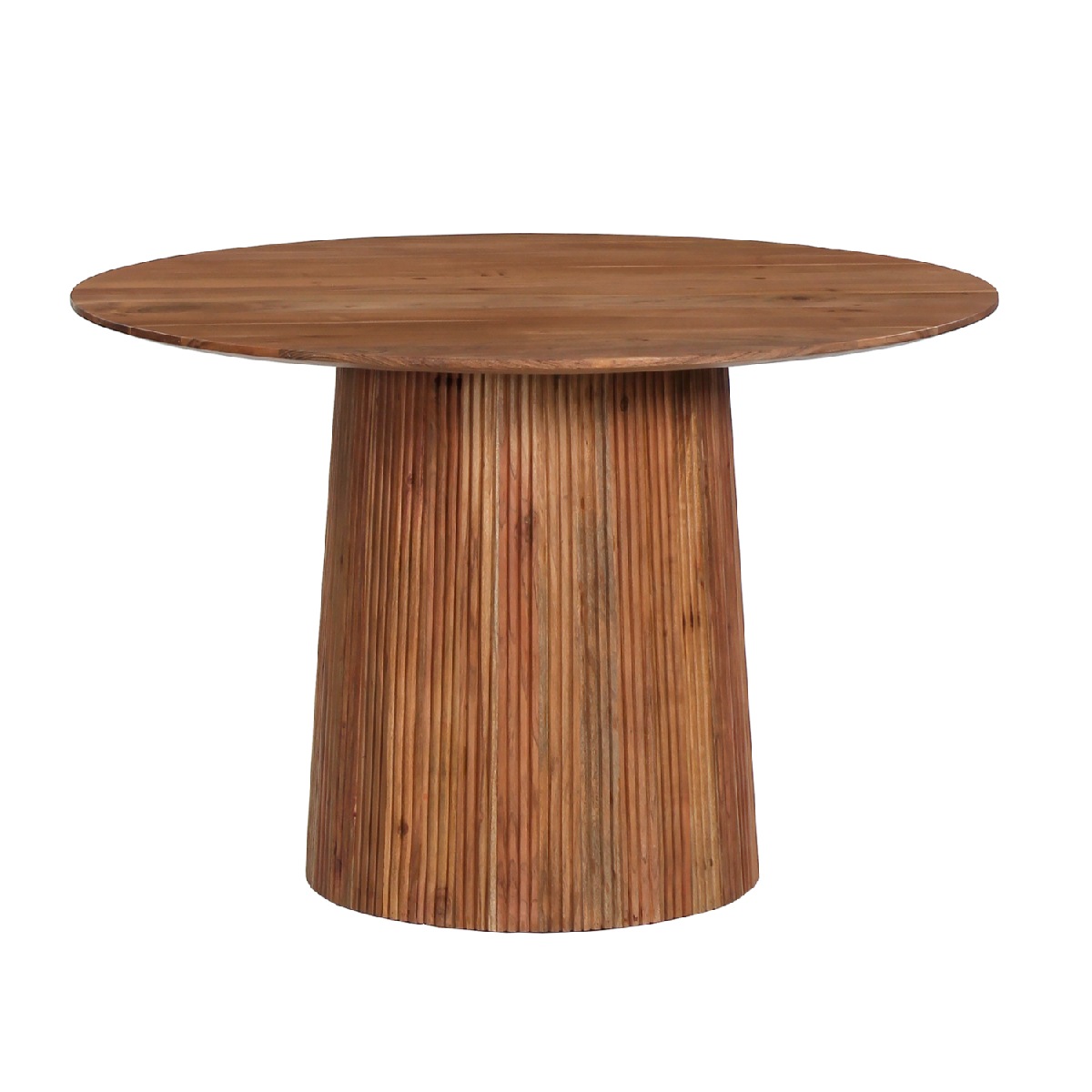 Το GROOT είναι ένα στρογγυλό τραπέζι τραπεζαρίας σε κανονική διάσταση σε φυσικό χρώμα ξύλου. Το τραπέζι στηρίζεται σε μια ξύλινη κατασκευή στο κέντρο με πολλές δοκούς σε κυκλική/κωνική διάταξη. Αυτό το τραπέζι θα αναβαθμίσει αισθητικά την τραπεζαρία σας ενώ μπορεί να ταιριάξει με πολλά διαφορετικά στυλ και χρώματα στον τριγύρω χώρο, όπως και με διαφορετικά στυλ καρέκλας.
