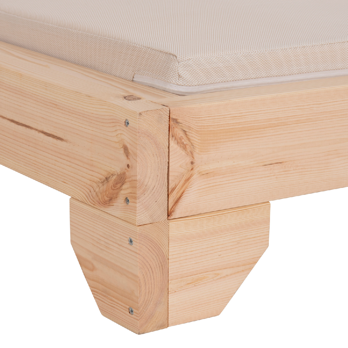 -Ολόκληρη η ξαπλώστρα έχει κατασκευαστεί από ξύλο πεύκου με εμποτισμό και επιπλέον στρώση με βερνίκι νερού. Το πεύκο είναι ένα μαλακό, λευκό ή ανοιχτό κίτρινο ξύλο το οποίο είναι ελαφρύ σε βάρος με ευθύγραμμα νερά ξύλου. Αντέχει στη συρρίκνωση, διόγκωση και κάμψη. Ο εμποτισμός υπό την ευρεία έννοια είναι ο χρωματισμός του ξύλου (συνήθως βερνίκια) με την μέθοδο της εμβάπτισης.