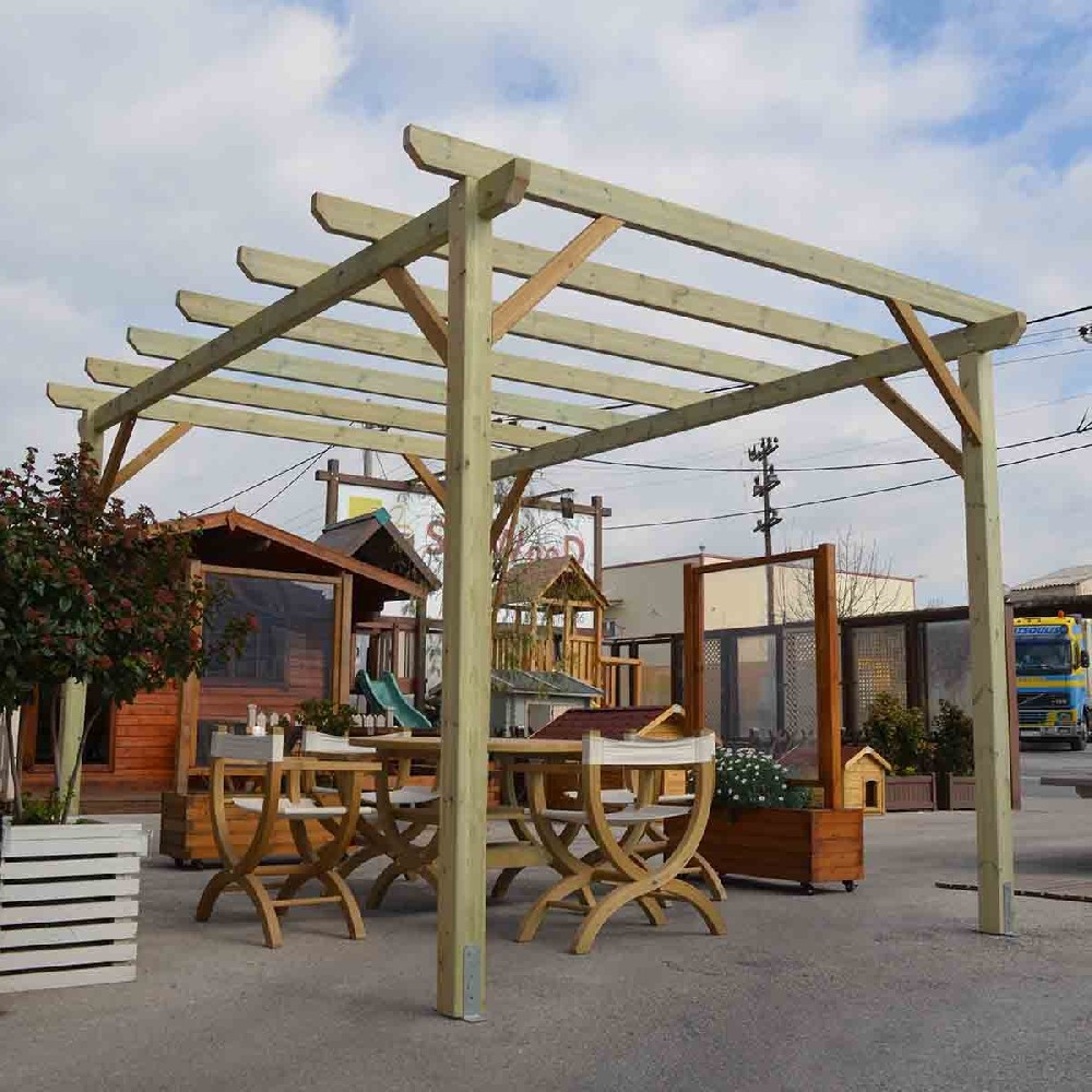 ΠΕΡΓΚΟΛΑ 300x400εκ. Κολώνες στήριξης 12x12εκ., Κεντρικοί δοκοί 6X12εκ., Τεγίδες (παράλληλοι δοκοί) 4,5x12εκ., Αντηρίδες (μόνο σε αυτόνομη πέργκολα) 4,5x9,5εκ ,