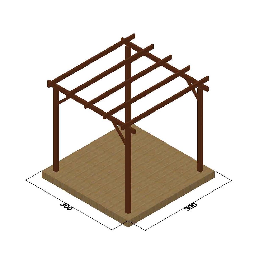 ΠΕΡΓΚΟΛΑ 300x300εκ. Κολώνες στήριξης 10x10εκ., Κεντρικοί δοκοί 6x12εκ.,Τεγίδες (παράλληλοι δοκοί) 4,5x12εκ., Αντηρίδες (μόνο σε αυτόνομη πέργκολα) 4,5x9,5εκ.