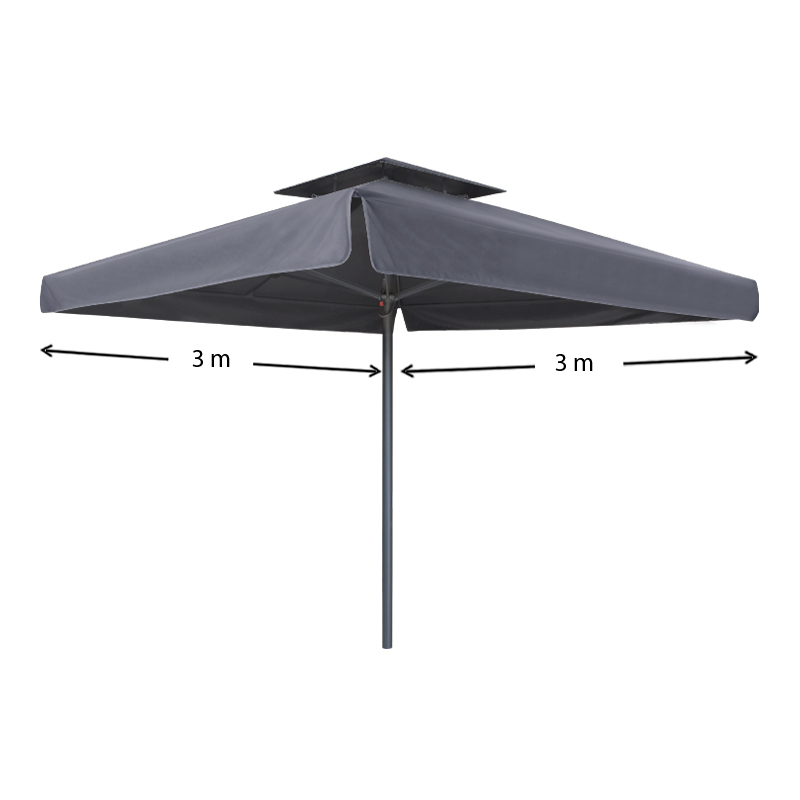 Ομπρέλα επαγγελματική Juno Megapap τηλεσκοπική αλουμινίου χρώμα ανθρακί 3x3m.Τετράγωνη ομπρέλα αλουμινίου με τηλεσκοπικό μηχανισμό και διπλό αεραγωγό που επιτρέπει την κυκλοφορία του αέρα μειώνοντας ταυτόχρονα την πίεση του. Ιδανική επιλογή για επαγγελματική χρήση όπως beach bars, πισίνες και χώρους εστίασης.