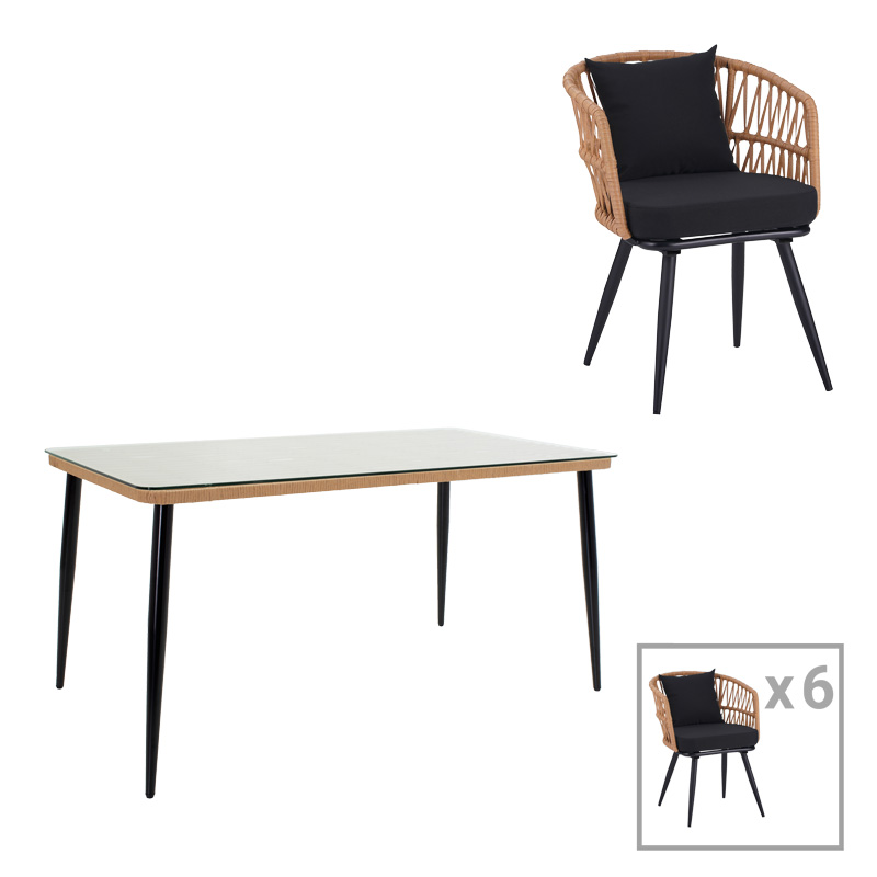 ΤΡΑΠΕΖΑΡΙΑ NAOKI ΣΕΤ 7 ΤΕΜ PAKOWORLD ΜΕΤΑΛΛΟ ΜΑΥΡΟ-PE ΦΥΣΙΚΟ-ΓΥΑΛΙ 160X90X78ΕΚ
