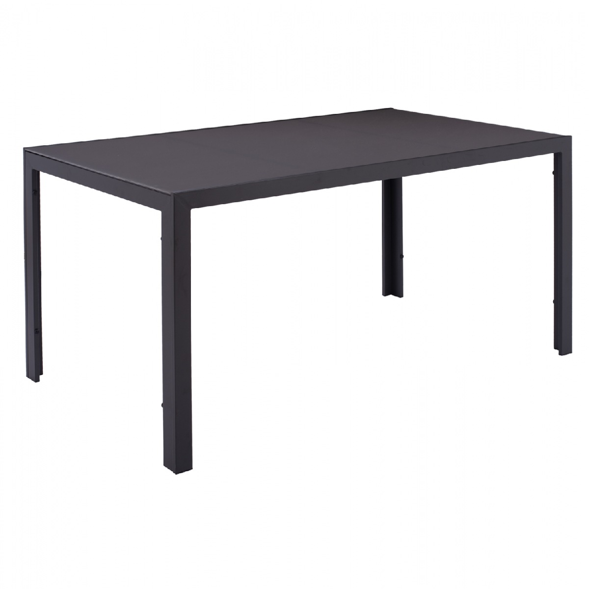 Τραπέζι εξωτερικού χώρου μεταλλικό σε γκρι απόχρωση με γυαλί στην επιφάνειά του.