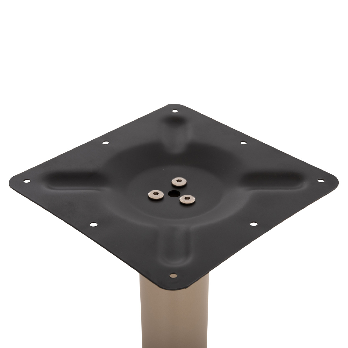 Η ΗΜ417.25 είναι βάση για τραπέζι bar σε ΚΑΠΟΥΤΣΙΝΟ ΜΑΤ χρώμα. Διαθέτει μεταλλική κολώνα η οποία στηρίζεται σε μια βαριά μαντεμένια 4-νυχη μεταλλική βάση. Το καπάκι που θα διαλέξετε στηρίζεται σε μια μεταλλική τετράγωνη επιφάνεια, με αποτέλεσμα να μπορεί να δεχθεί τόσο στρογγυλά καπάκια, όσο και τετράγωνα. Επίσης, στο κάτω μέρος της διαθέτει ρυθμιστές ύψους (ρεγουλατόρους). Ιδανική πρόταση για συνδυασμό με επιφάνειες σχεδόν κάθε είδους, όπως βερσαλίτες, HPL, MDF, κτλ.