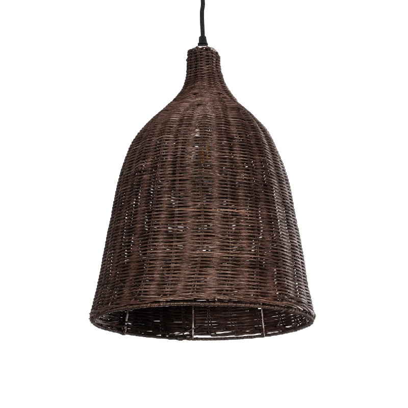 GloboStar® BAHAMAS 01367 Vintage Κρεμαστό Φωτιστικό Οροφής Μονόφωτο Καφέ Σκούρο Ξύλινο Ψάθινο Bamboo Φ30 x Υ40cm