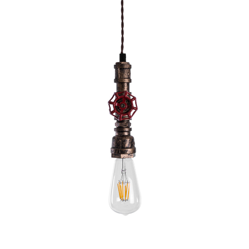 GloboStar® SPIGOT 01413 Vintage Industrial Κρεμαστό Φωτιστικό Οροφής Μονόφωτο Μπρούτζινο Μεταλλικό Μ5 x Π7.5 x Y20cm