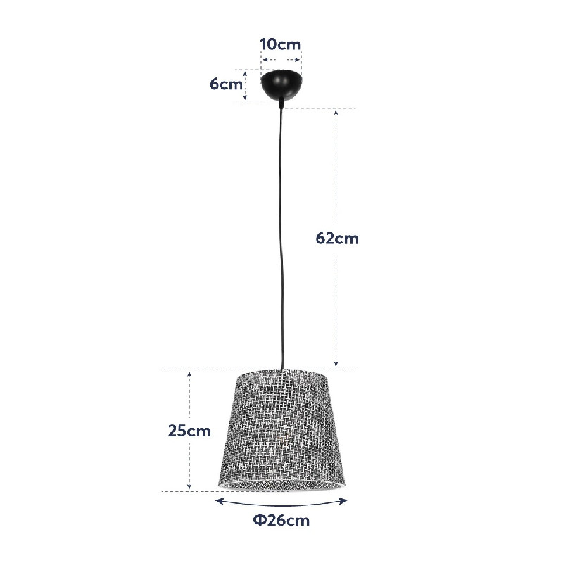 Σειρά :CONEY Είδος :Μονόφωτο Χρώμα Σώματος :Γκρι Υλικό Κατασκευής :Ύφασμα Ύφος :Μοντέρνο Τύπος Φωτισμού :Με Λαμπτήρα (Δεν περιλαμβάνεται) Ντουί :E27 Ποσότητα Ντουί :1 Προτεινόμενος Τύπος Λάμπας :ST64 Τρόπος Τοποθέτησης :Κρεμαστό Μέγεθος :26εκ Τάση Λειτουργίας :AC 220-240V Προσοχή :Ο Λαμπτήρας δεν Περιλαμβάνεται στη Συσκευασία Βαθμός Προστασίας :IP20